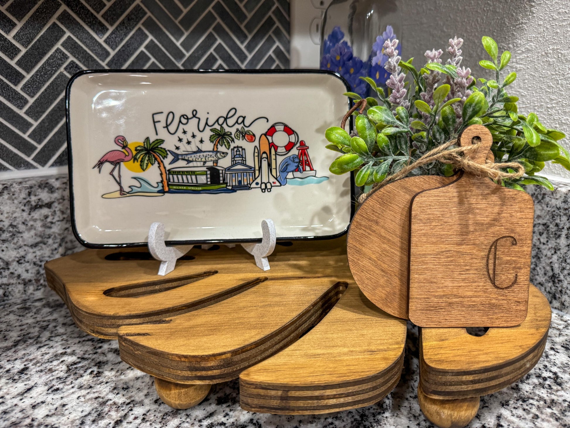Add a touch of tropical charm to your countertop, shelf, or table with this handcrafted Monstera Leaf Riser! Inspired by the bold shape of a monstera leaf, this smaller version of our popular plant stand features a flat, artistic monstera leaf top supported by four rounded wooden knobs for legs—making it a stylish and functional riser for plants, candles, soap dispensers, or decor.